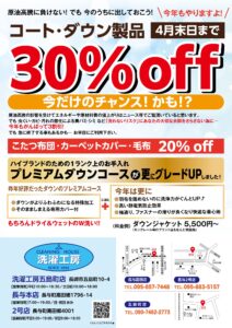 クリーニング1万円(税込)以上お持込で保管料2,000円(税別)→半額1,000円(税別)となります。